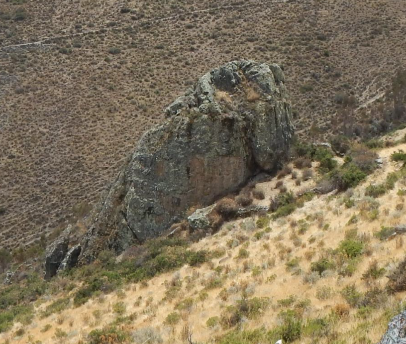 Figure 2 – View looking east at prominent outcropping mineralized breccia pipe in the Compañero cluster. Diameter of outcropping pipe is approximately 25m.