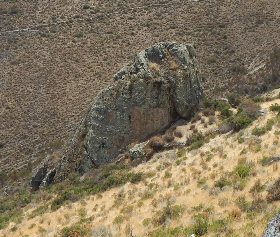 Figure 2 – View looking east at prominent outcropping mineralized breccia pipe in the Compañero cluster. Diameter of outcropping pipe is approximately 25m.