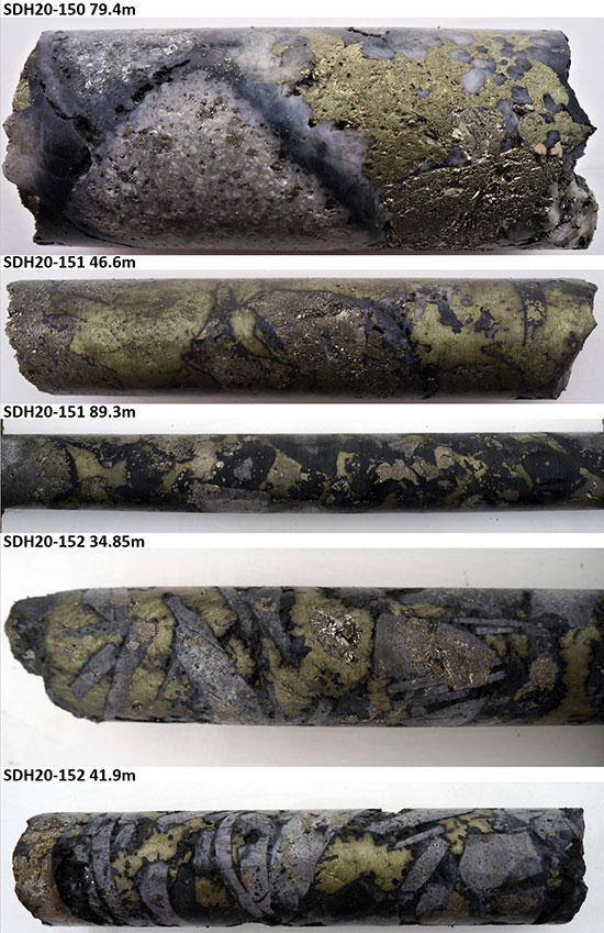 Examples of mineralized drill core from these holes are shown in Figure 4.